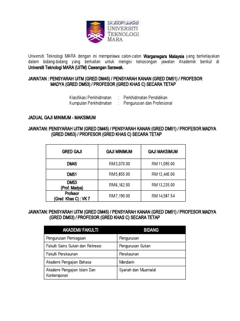 Uitm Buka Pelbagai Kekosongan Jawatan Pentadbiran Akademik Untuk Tahun 2021 Gaji Rm1 264 Rm9 643 Tarikh Tutup 19 Julai 2021