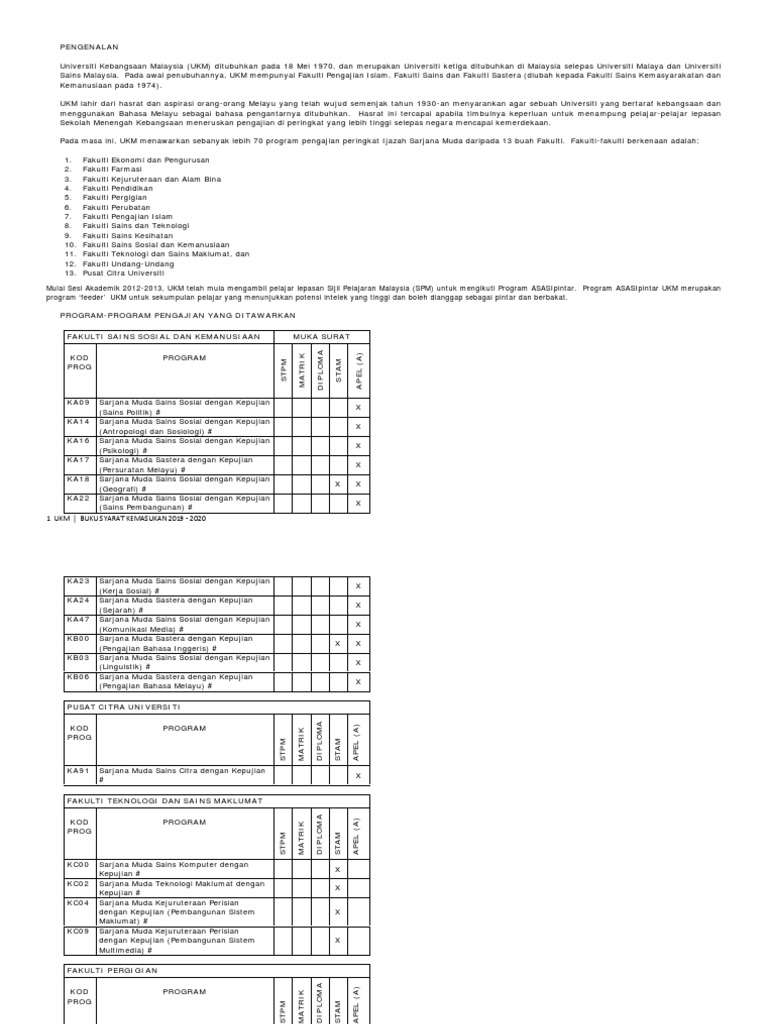 Universiti Kebangsaan Malaysia Ukm I Program Page 02 Ziliao 13 Sbquo Nbsp Sbquo Universiti Kebangsaan Malaysia Ukm 1 I Program Pengajian Ii Kod Iii Tempoh Pengajian Bil